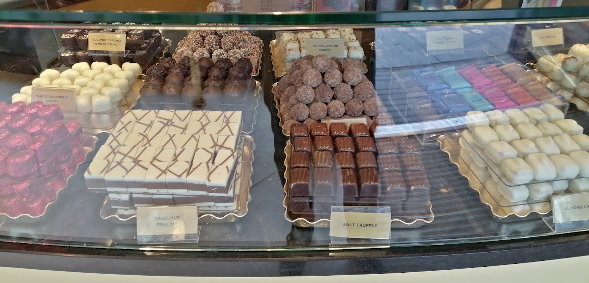 Moreover, each drink comes with a complimentary piece of your choice from their delectable chocolate selection, a lovely touch cherished by many patrons. Feedback from visitors like Iwona Swisulska and Kiran Singh underscores the café's excellence, endorsing it as a must-visit for both take-away sweets and dine-in indulgence.